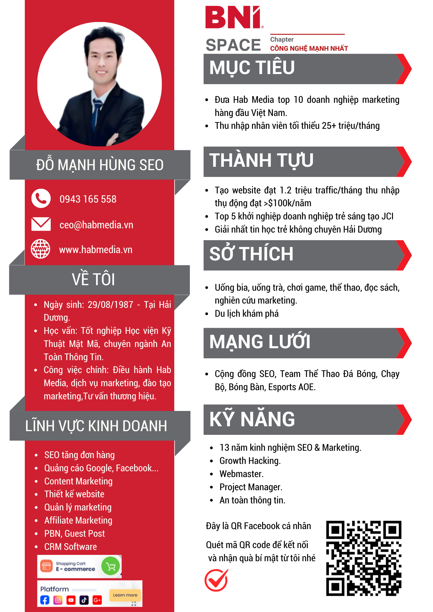 Tôi tên là Đỗ Mạnh Hùng ( Hùng SEO) – ông là Founder và là chủ tịch của Hab Media, tác giả sách Amazone, chuyên gia MMO, học vấn kỹ sư ngành An Toàn Thông tin (Học viện kỹ thuật mật mã).